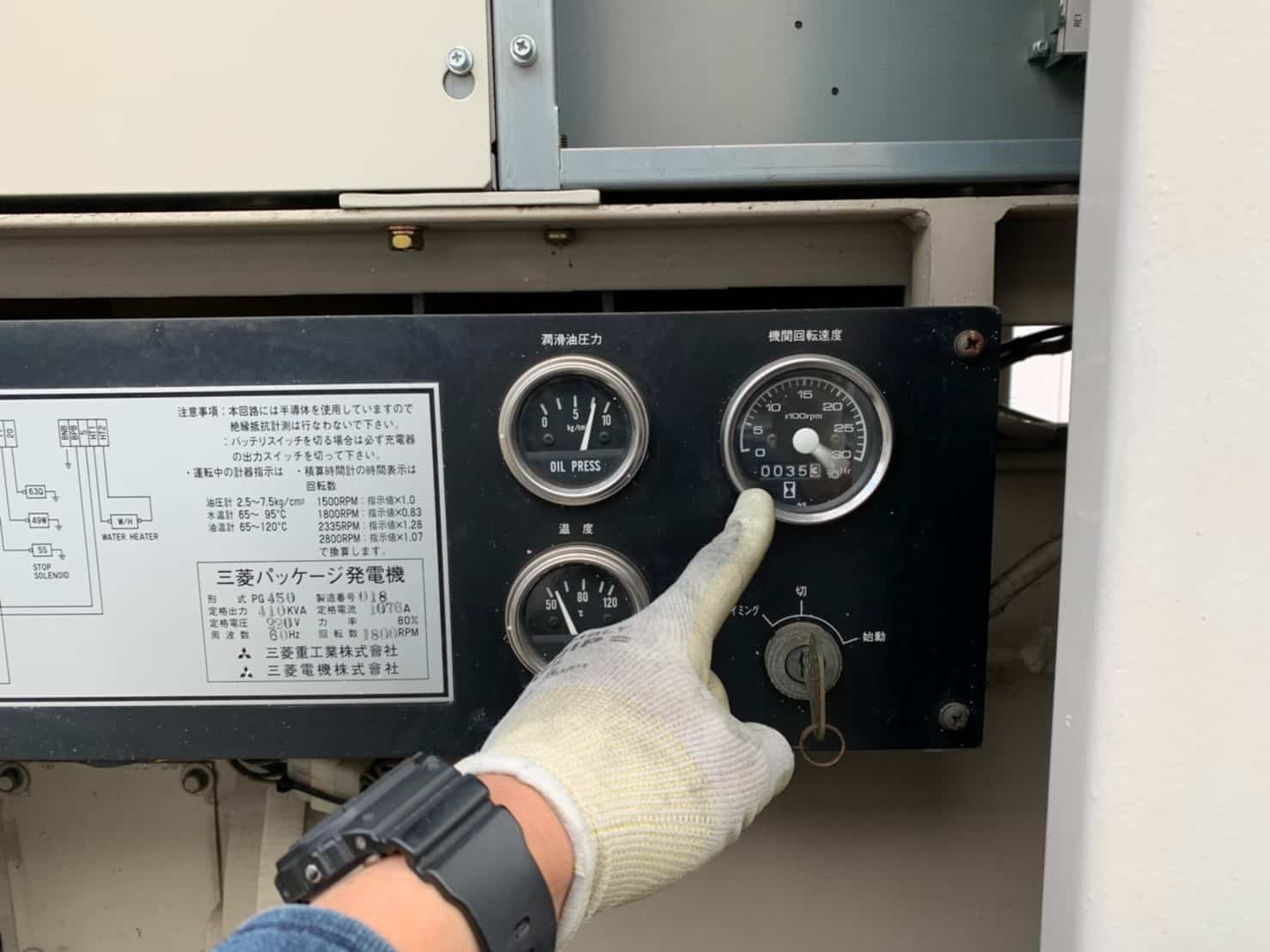 回転計の故障を確認。後日要修理。